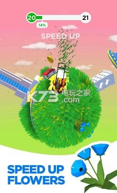 《草地行星(Grass Planets)》游戏关卡众多,你需要来旋转行星来进行割草,将星球打扫的干净,并注意避开星球上的建筑物和汽车等,还有着新的割草机供玩家解锁。