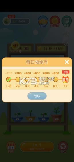 《阳光金币屋》让玩家进行盆栽合成升级,随着等级提升可以获得更多的阳光,阳光金币屋游戏中阳光可以解锁新的盆栽并且兑换金币,另外还有任务和扭蛋系统。