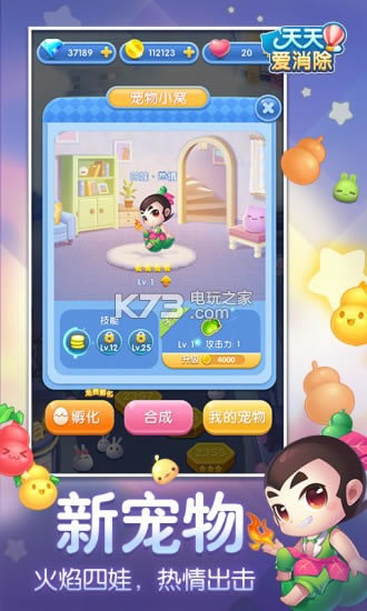 百变造型,总有一只宠物萌化你!更有自带超强技能的月亮宠物,助力你的爱消除之旅!