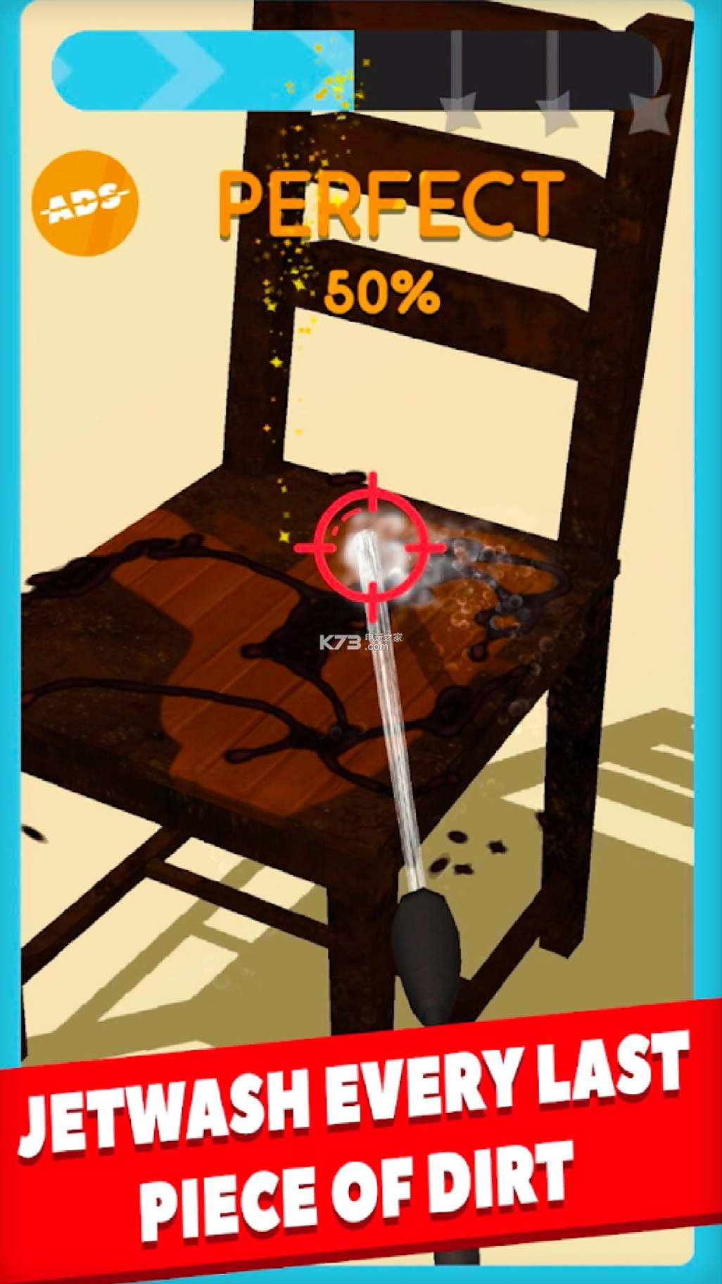 顾名思义,游戏玩法就是洗一切给出来的物品,需要做的就是通过手指滑动来控制水喷头喷的位置,只要把东西洗干净就能过关。