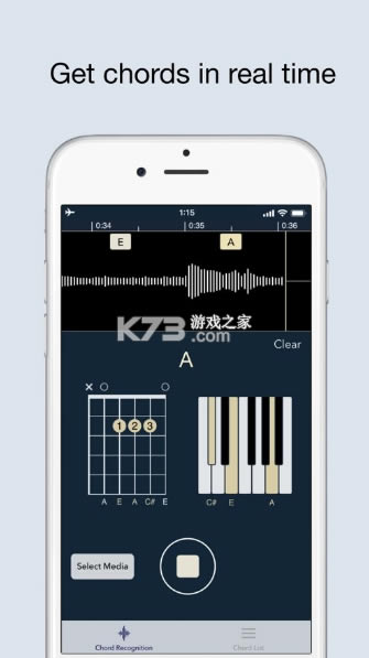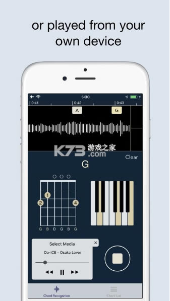 1) 通过您的设备麦克风。您周围播放的任何歌曲或您的设备播放的任何歌曲都会通过您的设备麦克风进行分析,并实时显示和弦位置。您可以回到过去并与时间轴上显示的和弦一起重播歌曲。