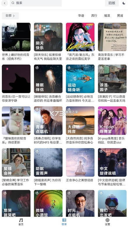还有各种分类歌单,涵盖华语、粤语、韩语、流行、摇滚...等等歌单。