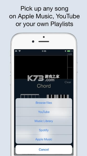 通过您的设备麦克风。您周围播放的任何歌曲,或您的设备通过流媒体服务播放的歌曲,都会通过您的设备麦克风进行分析,并实时显示歌曲的和弦。你可以回到过去,将歌曲与时间轴上显示的和弦一起重放。