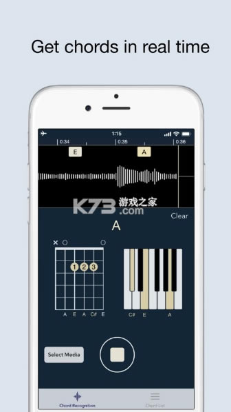 1) 通过您的设备麦克风。您周围播放的任何歌曲或您的设备播放的任何歌曲都会通过您的设备麦克风进行分析,并实时显示和弦位置。您可以回到过去并与时间轴上显示的和弦一起重播歌曲。