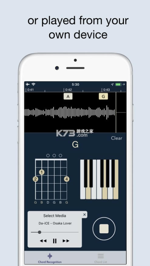 Chord ai 聆听从您的设备、任何视频/音频流媒体服务播放的音乐或在您周围现场播放的音乐,并立即检测和弦。然后它会显示在吉他、钢琴或四弦琴上演奏歌曲的手指位置。