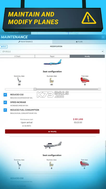 10.自定义您的飞机的座位配置,机场可以相互投资以提高股价。