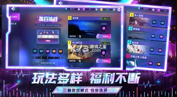 强大的音乐曲库,收录了非常多不同种类的不同曲风的歌曲,玩家可以尽情挑战,尽情闯关。