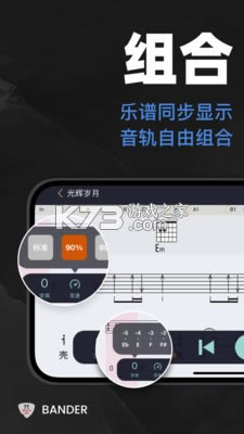 -同步得分的总类别分为三类;打击乐,电吉他,原声吉他,贝司,键盘和主旋律,与同步和声和歌词提示。