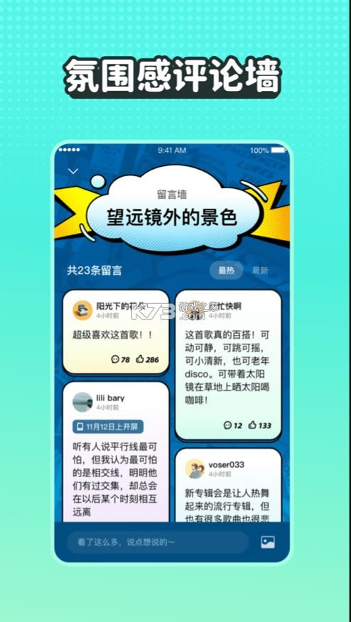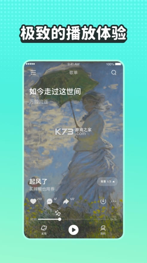 播放页面充分体现了音乐的氛围,使听歌更有趣