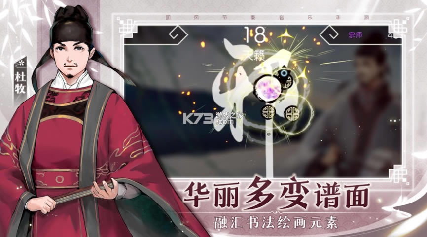 以诗入歌,首创重视歌词互动,将古典诗词融入游戏中,随着音乐节奏点击诗词,或如书法般画出文字。玩家在游玩中,体会诗词文字之美。多主角多线故事模式,重现历史典故,再现经典感动。