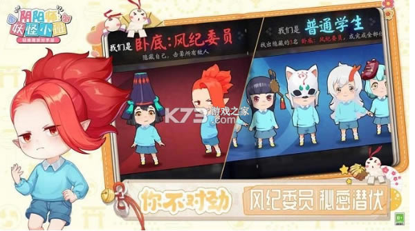 游戏作为阴阳师系列的衍生,游戏类型属于经典的狼人杀游戏,还有立绘取自同系列的动漫,都是非常萌的幼崽画风,玩家们将会选择自己喜欢的角色,包括一些老的式神:茨木、酒吞还有妖刀姬,都是特别的可爱,玩家之间通过规定的发言来表达自己的极致演技,震撼人心,最终你是否能抓住卧底风纪委员呢?