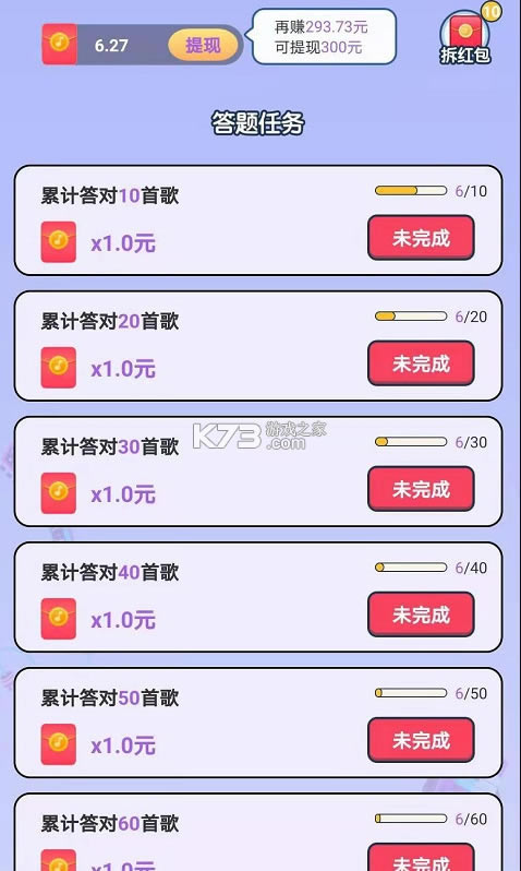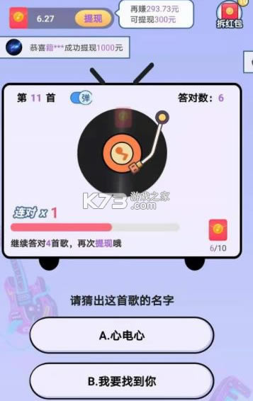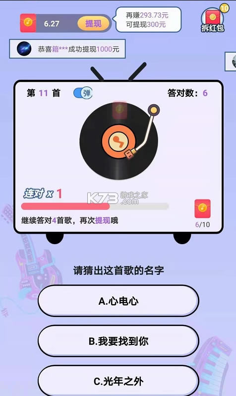 猜歌名得红包,猜对10首2000金币,20首就能提取。