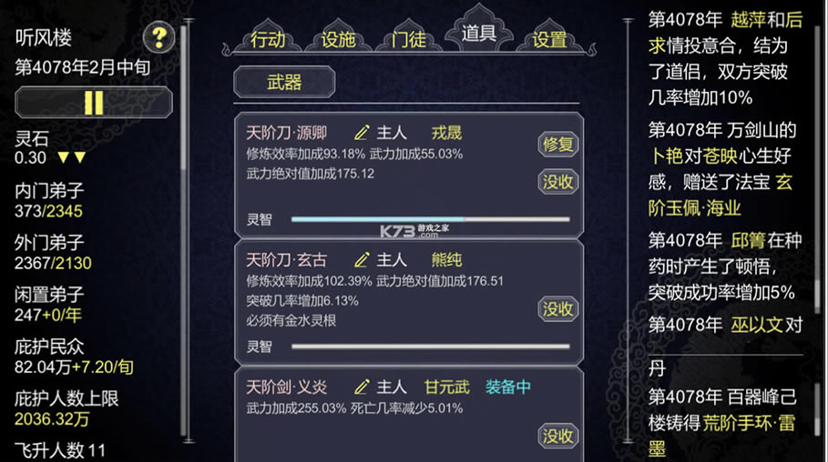 非常另类的修真经营玩法,自己创建门派,自己进行管理