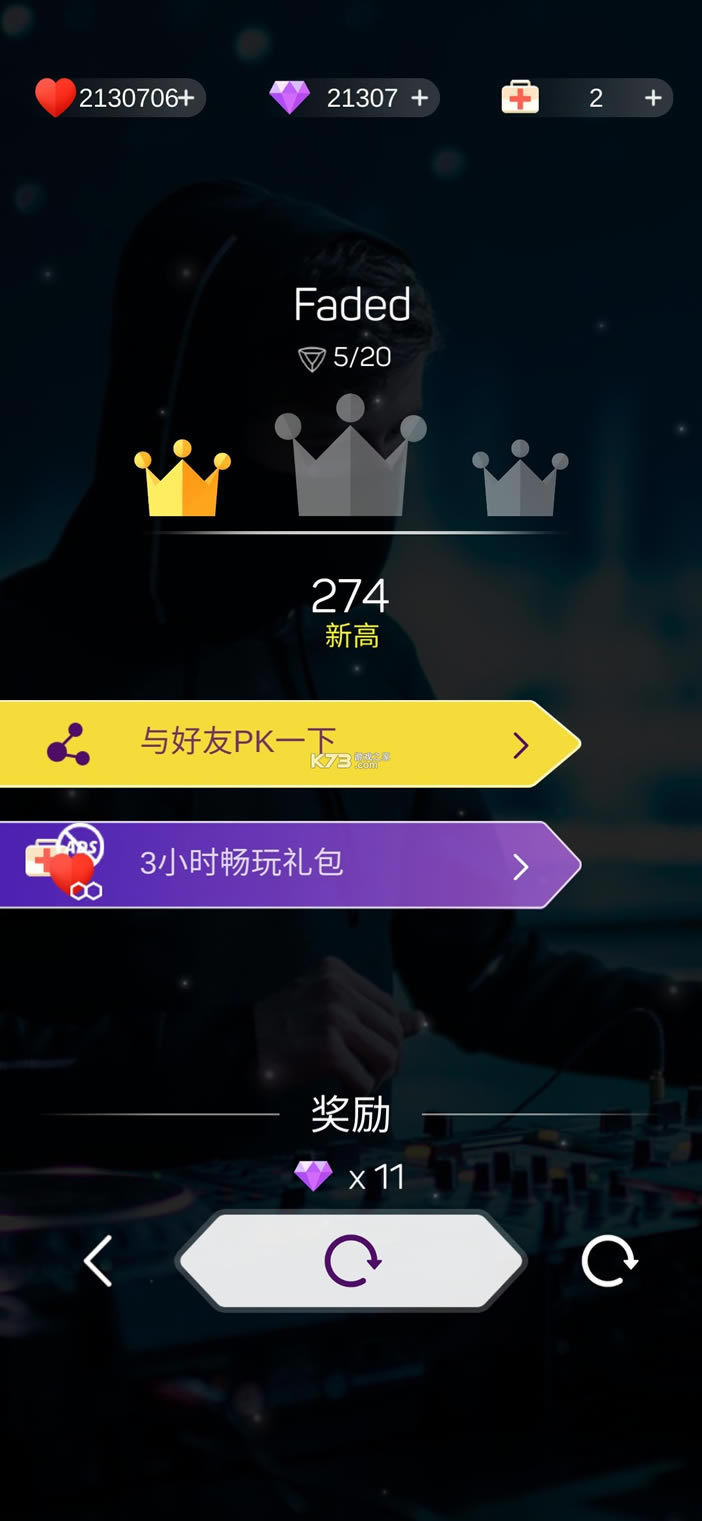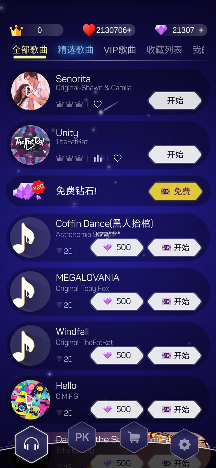 努力获得更多的分数和钻石吧!舞动手指,来体验最强节奏感带来的刺激吧