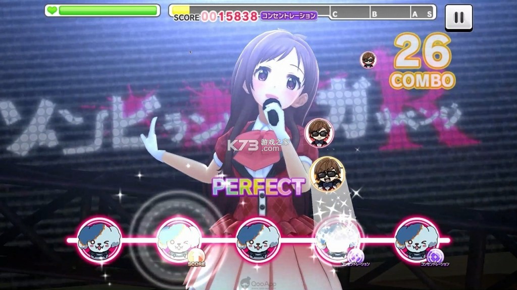 游戏整体画风偏日系动漫风,背景和音效制作也非常不错,游戏的操作方法也非常简单,玩家根据节奏在指示物与下方偶像图标重合时点击就可以了,是一款非常棒的游戏。