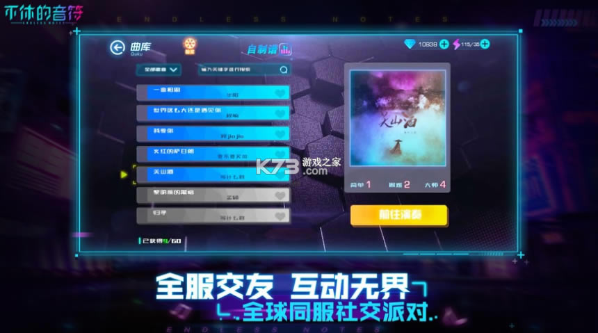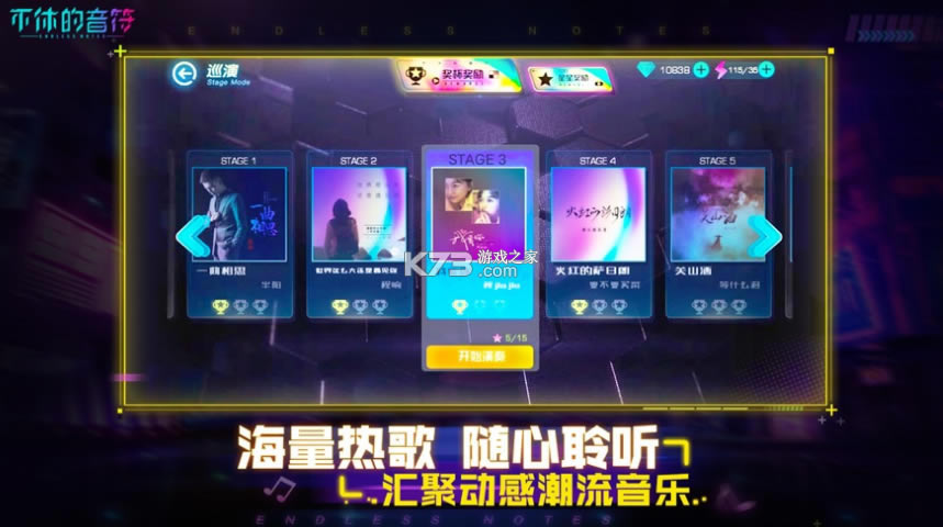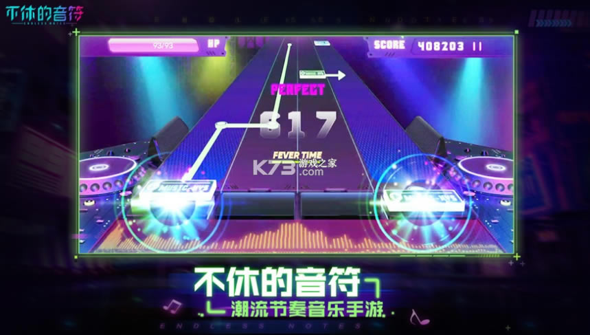 《不休的音符》是一款年轻时尚的音乐节奏手游,力求为国民打造轻松畅快的休闲体验。本作收录明星音乐人亲选歌单,海量潮流歌曲免费聆听,绚丽多彩舞台自由闯关,完美适配所有机型,可单机可联网,不同难度任你挑战。游戏融合传统下落式玩法和花键操作模式,开启了创新的大师赛玩法,与全国音游达人实时比拼,角逐成为当地的节奏大神。