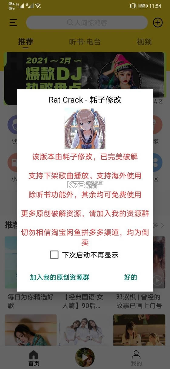 注意:此软件首次打开会提示付费加群,直接点击不再提示即可,这是修改破解作者加的不影响使用。
