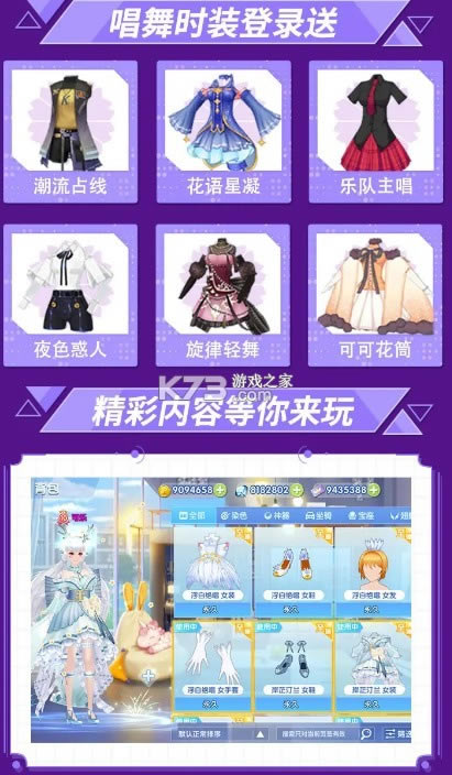 还有精彩的舞蹈内容体验,手游支持进行角色搭配,更多好看的服装获取