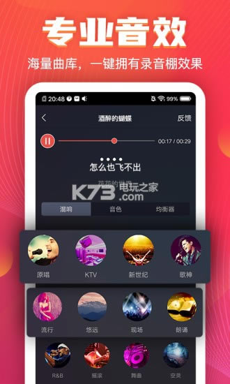 • 特为手机终端调试的专业音效,唱出神一样的自己;