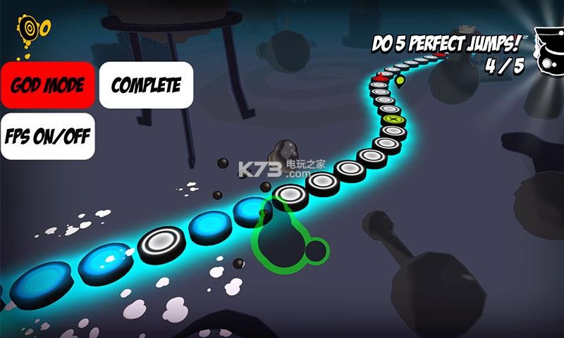点击显眼的开始按钮后,原本滑稽的背景音乐突然来了个360度大转弯,摇身一变成节奏感十足的音乐。点击屏幕时,黑团边起跳边发出滑稽的叫声,与背景音乐产生了完美的化学反应,自然地融进了音乐当中。“你可以录下自己的声音,放入游戏之中。”新功能,新体验。想要独一无二的游戏音效?自己做!录下声音,改变跳跃,出现,落地的音效,打造只属于自己的BGM,一往无前,永不言弃。