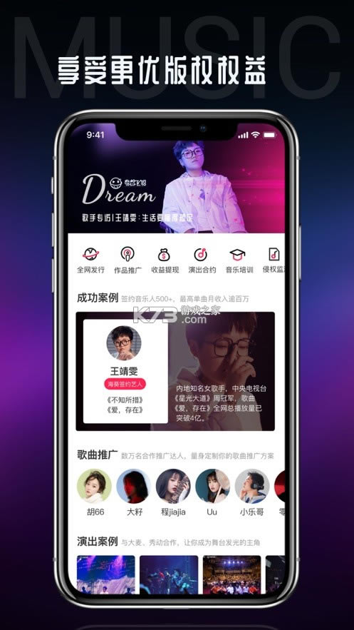 海葵分贝是一款服务于音乐人的专业平台,以提高音乐人作品收益、流量,促进音乐人合作为目标,为音乐人提供发行代理、作品推广、词曲交易、音乐制作、侵权监测、音乐培训等一系列服务,让您的音乐无处不在。在这里可以针对不同的作品进行在线推广,了解不同的推广操作带来的轻松,而且还可以针对不同的音乐人提供了最优质的便利,了解不同的音乐信息也会更加的简洁化,更好的感受到不同音乐的魅力所在。