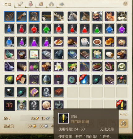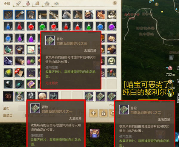 合成后可以在背包发现自由岛地图,右击开启任务。