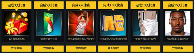 活动期间,累计登录游戏并每天完成三场比赛(需要完成完整比赛),第二天中午12点之后返回页面领取相应的奖励。奖励包括:热门道具,QQ实物公仔,更有NBA球星“约翰·沃尔”(永久时限)等你来拿!快来参与吧!