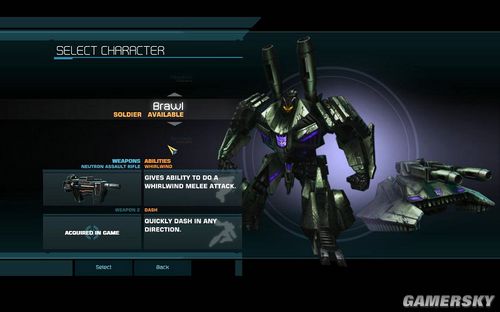主武器NEUTRON ASSAULT RIFLE,很好用的突击步枪。BRAWL在普通模式下,特殊技能是如同旋风一样的利斧前进攻击敌人,按SHIFT即可开启