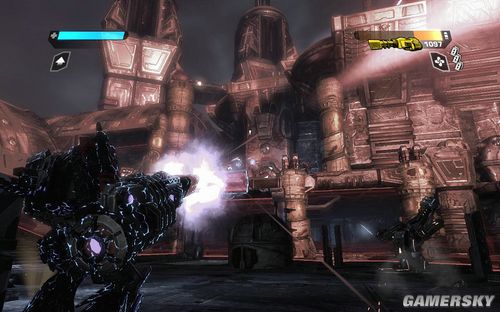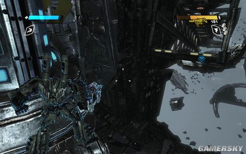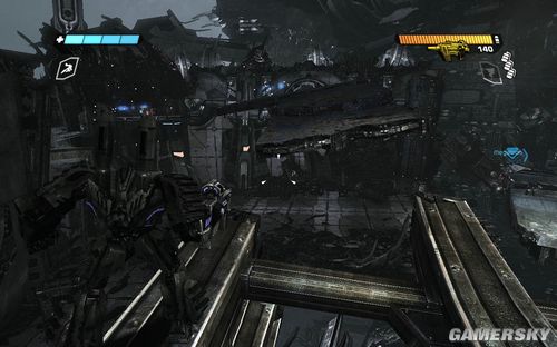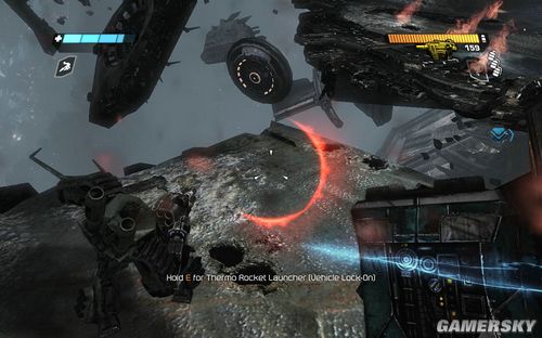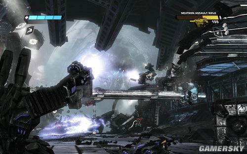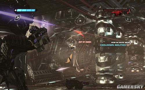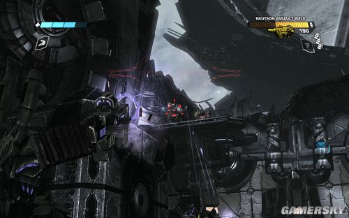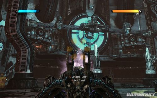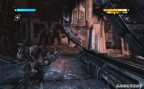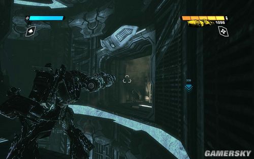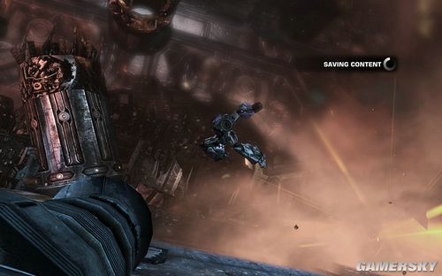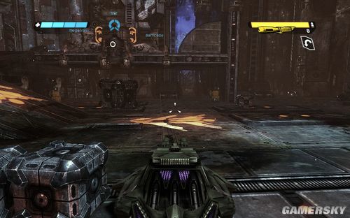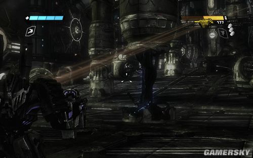 一路前进到下图的区域,这里还是让你练习一下战斗。目标则是四个柱子出现的四个机枪炮塔。这里注意可别把突击步枪真当CS里面的大菠萝玩命的扫射了