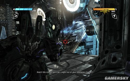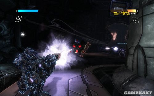 后面的战斗就比较艰苦了,有很多隐性机甲和盾牌兵挡在你的面前,而且沿路会遇到扔EMP炸弹的机甲,小心应付。。此时你可以多使用散弹枪进攻消灭之
