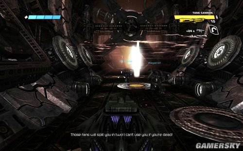 一路向前,会碰到这样的大旋转风扇。硬冲过去是会直接被转死的。唯一的办法是那武器瞄准扇叶打碎之