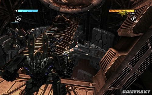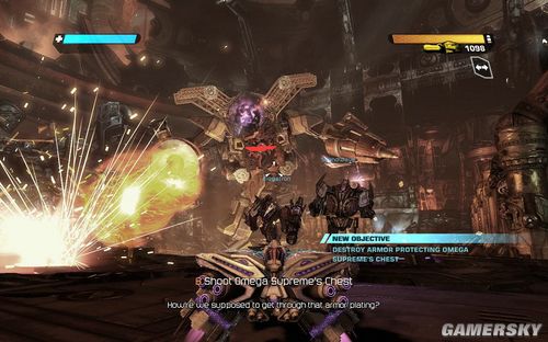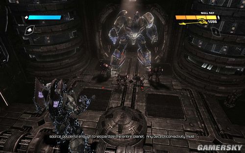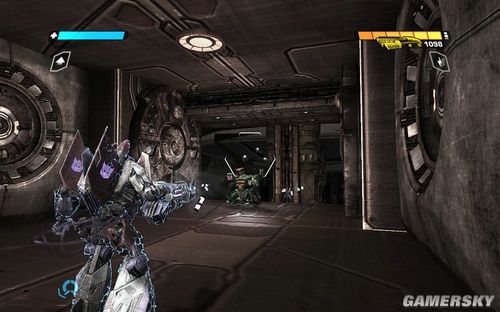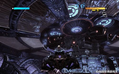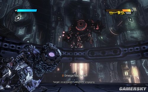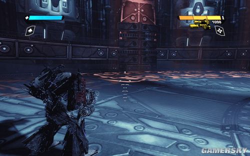 然后我们的OMGEA大神会发射出疯狂的超级激光,此时要迅速后退到后面的大门,然后等待威震天打开