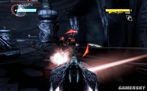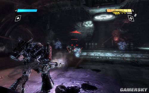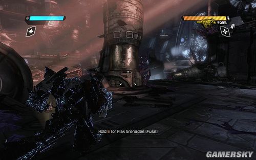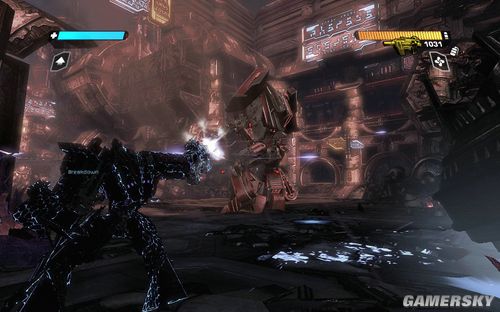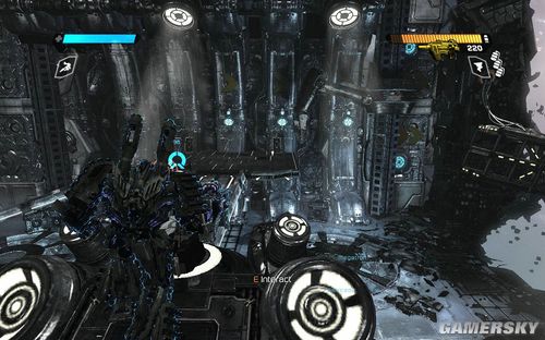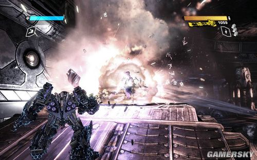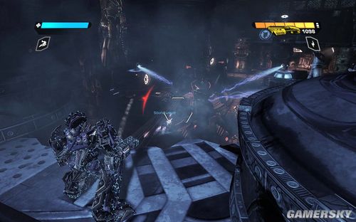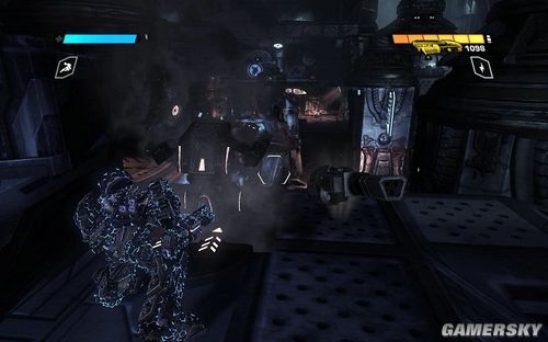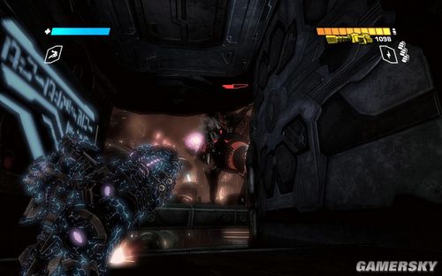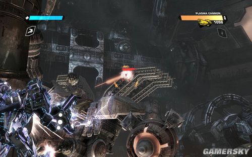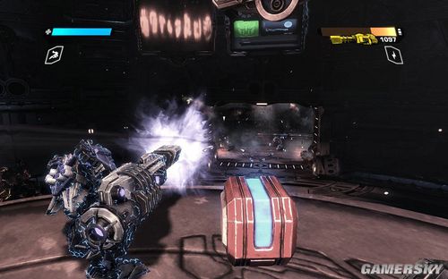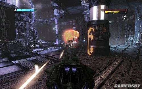 按F可以切换到TANK模式下,能量炮的弹药不是很多。但是对于几个聚集在一起的敌人效果很好。消灭完所有的敌人前进到最上面的平台打开开关即可进行下一步