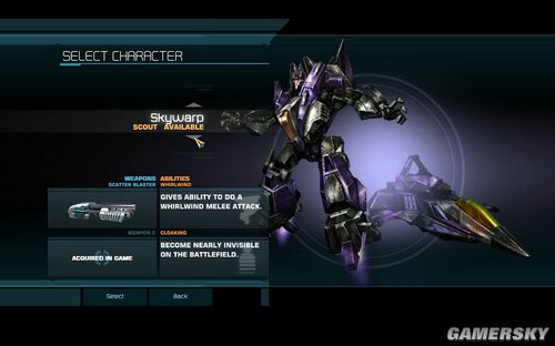 SKYWARP,SCOUT。只有一个武器SCATTER BLASTER。特殊技能以是使用旋风斧攻击,特殊技能二是隐身技能