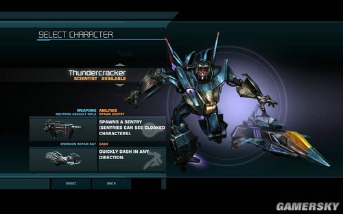 THUNDERCRACKER,SCIENTIST。工程师,主武器是NEUTRON ASSAULT RIFLE,第二武器是ENER REPAIR RAY,可以为你的同伴补充血量