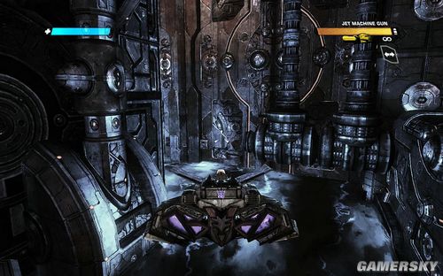 沿路的很多敌人都是需要变身为飞行模式,才能比较快速的解决敌人的。这里建议大部分情况下还是以飞行模式前进。来到下面的这个铁门的位置,首先变身为飞行模式消灭这些敌军