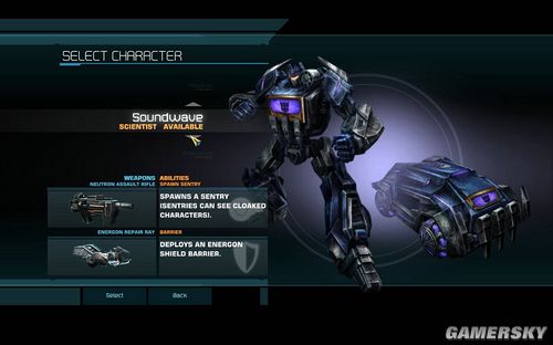 第二个SOUNDWAVE,类同与第二关的SCIENTIST。只不过第二技能是增加能量防护盾。这里不建议使用SCIENTIST,因为本关的战斗实在太过于激烈