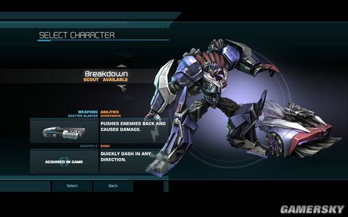第三个人物是BREAKDOWN,类同与第二关的SCOUT类人物。速度很快,但是比较脆弱