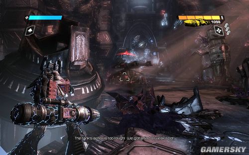 沿路继续前进,还是使用E对于物品进行互动打开前面的通道。来到下面的场景。这里就可以发挥TANK的长处了。这个时候你可以尽情的使用TANK的能量炮轰击躲在掩体前面的敌人