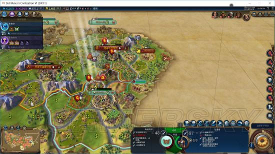 开局只需要2个左右圣地就能稳定发教,主城一般爆完第一波小弓就会选择锤圣地,还能顺带触发区域的尤里卡(这把主城地特别烂,连一个4产出的地块都没有)然后3-4城锤兵营拿古典大军和文艺复兴大军(主城还赚了一次项目),剩下的锤学院和商业区赚钱+加瓶子。