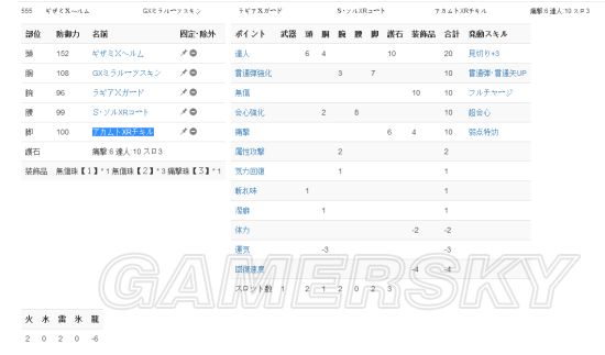钢龙和天廻各两套,各自第一套白色配装器为极限装,优点只有防御多34点和51点,缺点就是材料难入手。钢龙配装镰蟹头黑龙胸海龙手银火腰霸龙脚,弱点特效和连击心得通过护石改变,无伤和弹道强化通过珠子改变。天廻配装雄火头黑龙胸恐暴手银火腰恐暴脚;第二套游戏内截图为我原来做的,技能一模一样,钢龙配螳螂就行,容易入手,护石贯5达10S3。天廻配装见切头恐暴胸脚银火手腰,护石通5攻10S3~魔法协会专用,平民护士适当参考。