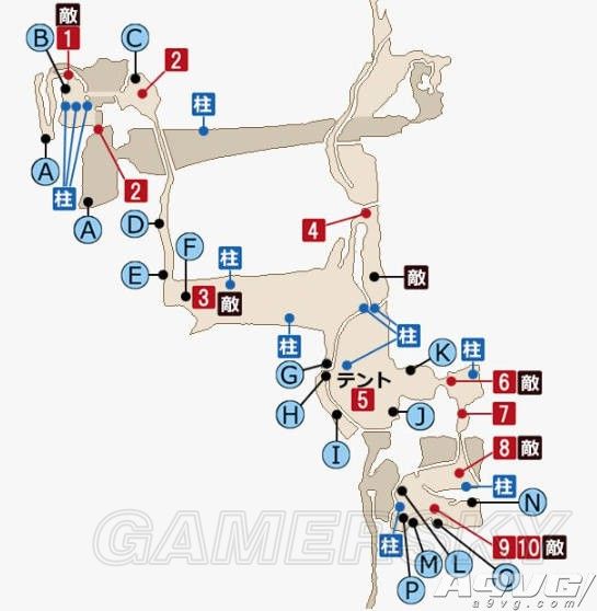 柱子有文字标注,英文字母标识是道具。