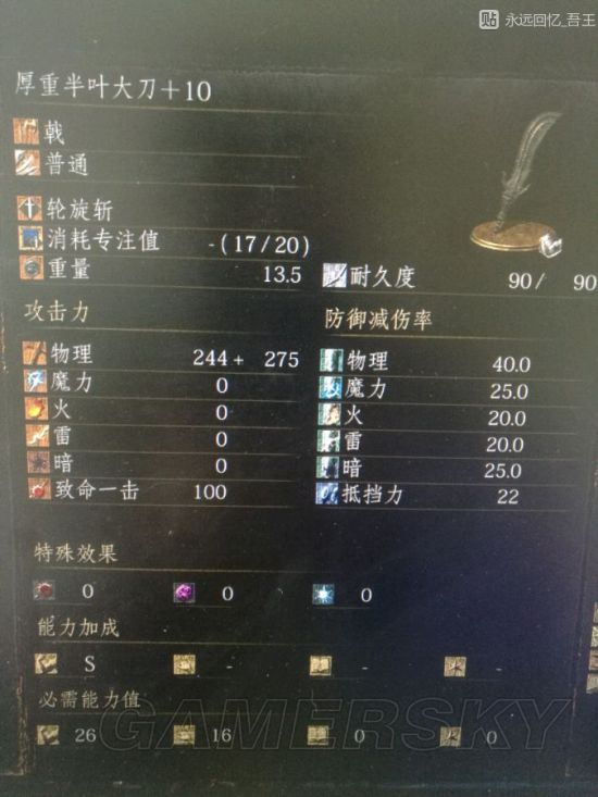 先说一下,狂王磔枪强化到最高时的面板是连s力量补正的半叶大刀都比不了的,并且狂王磔枪可以附魔。在几次的实战中,发现狂王磔枪的战技非常好用,尤其是抓翻滚侠。还有,狂王枪的动作模组很棒,第一下是大刀的劈砍,第二下是枪的横砍,非常容易卡距离和抓动作。面板对比,狂王枪会高出60左右。