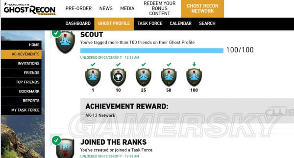 上面一栏选择GHOSTPROFILE然后左边一列选择ACHIEVEMENTS 如图所示。 即可查看所有成就