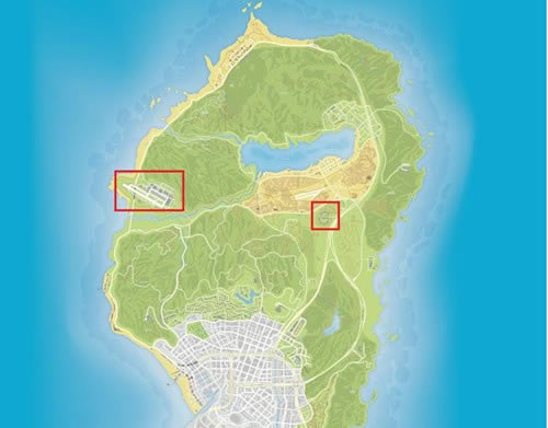 如下图所示,所示,左边红色框框是军事基地,右边的就是监狱。其位置就在崔佛家那边的沙漠,地图上有个多边形的区域。