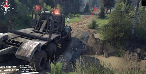 玩家也可以在地图上通过鼠标标示路径点,系统会自动生成一条路线,在左下角罗盘显示首个路径点的直线方向,如果玩家选择的是休闲模式难度,那么驾驶过程中会有一条具体的线路指引玩家的方向,这个功能非常实用,一定要好好加以利用的。