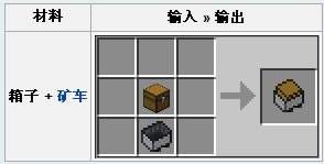 箱子和矿车结合会变作运输矿车,制作方法如下: