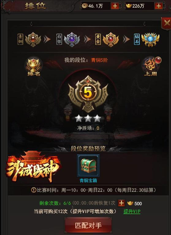 所有级别挑战失败不会掉落到本级别以下,在挑战中连续获胜2场即可获得连胜状态。在青铜和白银级别中,连胜状态下每次获胜可获得2个星级。