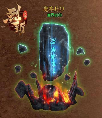 魔界封印为跨服玩法,持续十五分钟,每天13:00及19:00整,系统会在烈焰战场地图内随机点刷新一座魔界封印石碑,玩家进入烈焰战场地图自行寻找,找到魔界封印石碑后可通过它进入魔界封印地图。
