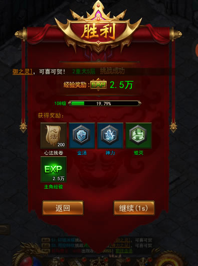 每通过一层,还可以获得大量经验、心法及心法残卷等道具。